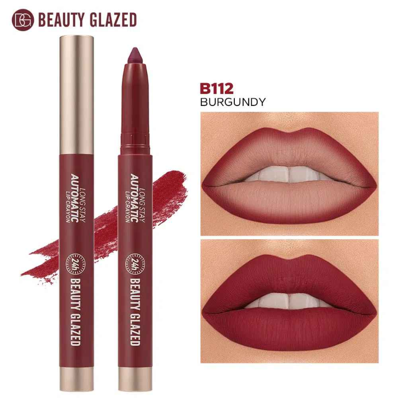 Beauty Glazed Long Stay Automatic Lip Crayon Matte Finish B112 Burgundy
